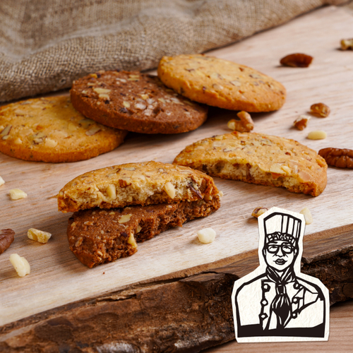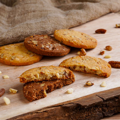 ナッツやオートミールなど、カラダに嬉しい健康素材も混ぜ込み、ザクザク食感に焼き上げています。