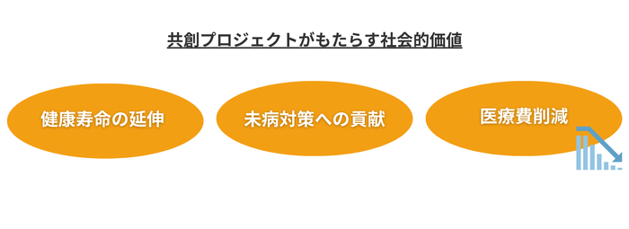 この共創プロジェクトの社会実装を通して、食事の味や満足感を損なうことなく健康的な食生活を実現する新たな食環境の創出を目指します。これにより健康寿命の延伸や未病対策など様々な社会的価値が生まれることに貢献します。