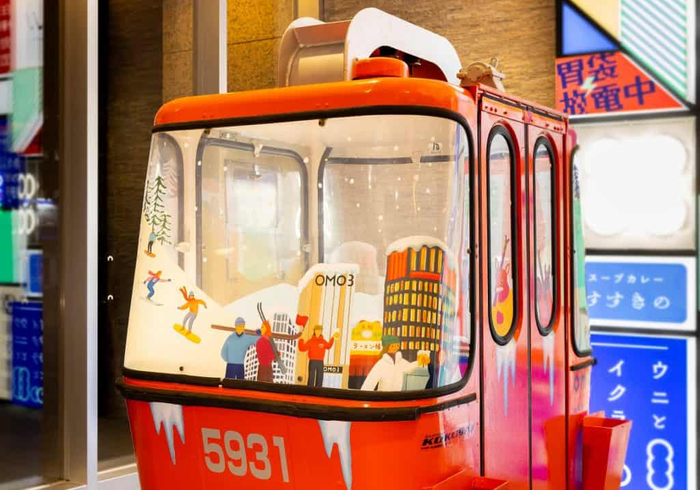札幌市南区定山渓にある「札幌国際スキー場」で使われていないスキー用ゴンドラを、館内のパブリックスペース「OMOベース」に設置します。このゴンドラは1978年~1989年まで札幌国際スキー場で使用されていた、純国産スキー専用ゴンドラ国内初号機「スカイキャビン-4」です。スキーやスノーボード後に、ホテルに戻ってからもスキー旅行気分で夜更かしを楽しめます。
