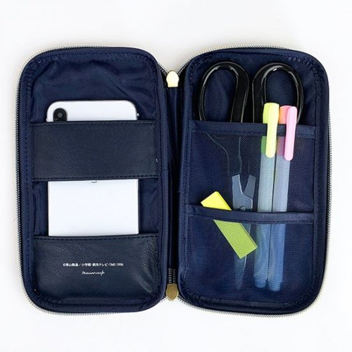 サイドの両開きのファスナーを開けると、中にはメッシュポケットがあります。2ヵ所に分かれているので、小さな物から長さのある物まで収納できちゃいますね。文具を整理して収納するのにもピッタリです。