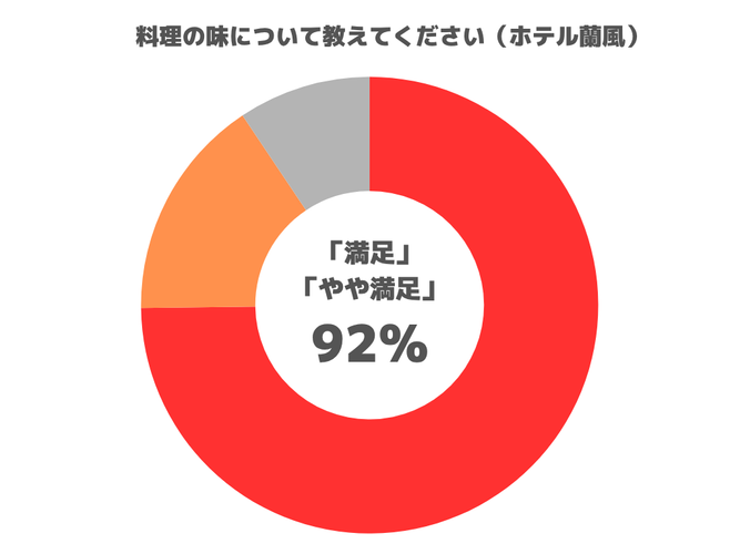 開始後に実施したお客様アンケートにおいて、「あわづグランドホテル」「ホテル蘭風」の2施設ともに料理満足度90%超えという高い評価を獲得したことをご報告いたします。さらに、同アンケートでは来館目的が「大江戸三つ星バイキング」であったお客様が80%を超え、本バイキングがホテルを選ぶ上での動機となっていることが明らかになりました。