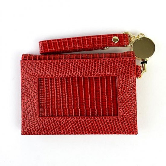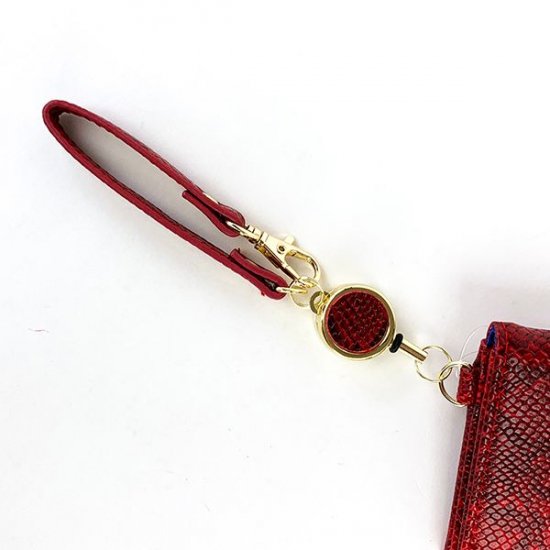 真っ赤なリザード調のパスケースは、女王にピッタリなテイスト。パスケース部分まで全てリザード革風の仕上がりになっています。