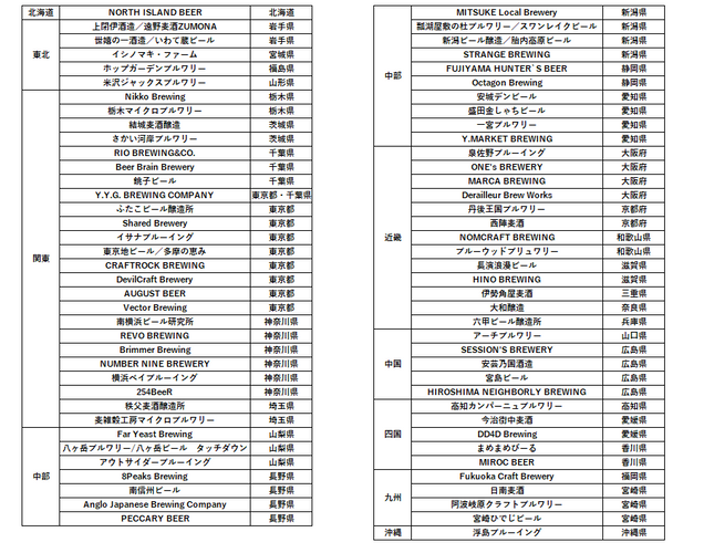 提携ブルワリー数(2021年11月10日時点)