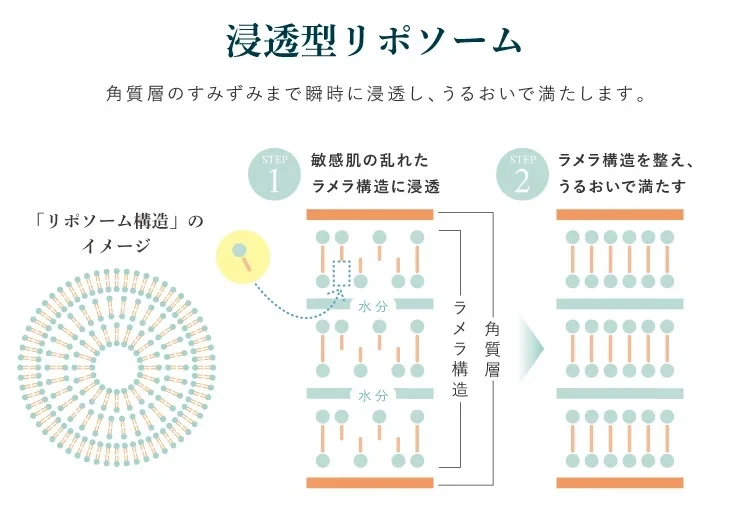 - 壊れたバリアに馴染みやすい「再構築型ラメラ」 「浸透型リポソーム」のセラミド