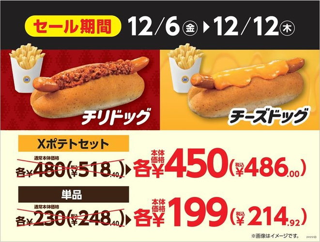 期間限定、おトクなセールを実施 「チリドッグ・チーズドッグ」 12月6日(金)~12月12日(木)おトクな7日間