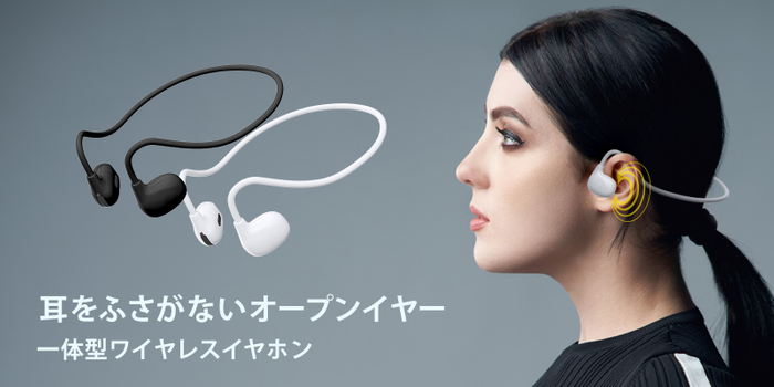 耳をふさがず、周りの音も聞こえる空気伝導タイプのワイヤレスステレオイヤホン