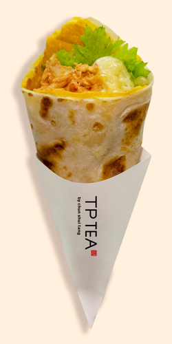 TP TEAでは、春水堂が35年以上にわたり培ってきた、厳選された無添加の茶葉や高品質なドリンクへのこだわりはそのままに、アクセスの良い立地、甘さや氷のカスタマイズなど、看板の“黄金比率のティーラテ”シリーズをはじめとした約70種のラインアップでアレンジティーのある毎日の楽しさを追求しております。「チキン蛋餅」はアレンジティーとの相性も良く、ボリュームあるフルサイズまたはハーフサイズとドリンクセットでもお得に購入いただけます。TP TEA日本オリジナルの商品、4店舗での発売です。