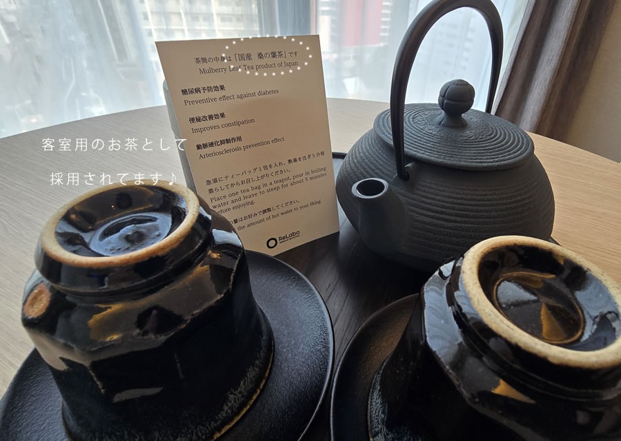 青森県の宿泊施設ReLaboでは、同社の健康茶が客室用のお茶として正式採用されました。