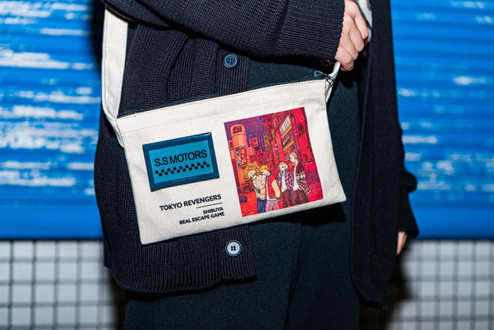 そんな本イベントのチケット情報がついに解禁! 少年探偵SCRAP団(FC)団員先行は2023年1月7日(土)12:00より、一般販売は2023年1月11日(水)12:00よりスタートします。通常チケットに加えて、イベント当日をよりお楽しみいただくための特典「渋谷大抗争セット」がついてくる「特典付きチケット」の販売も決定しました! 「渋谷大抗争セット」の中でも特に注目のアイテムは、片面に本イベントの「メインビジュアル」が、もう片面にはマイキーたちが渋谷の街を私服で歩くかわいらしいオリジナルイラストが施された「サコッシュ」です。さらに、東京リベンジャーズの世界でも登場する「S.S MOTORS」の缶バッジや、好きな東卍メンバーのキーホルダーなどをつけることができる「“摩武駄致”キーホルダー」もついてきます。ぜひ、東リベファン必見のここでしか手に入らない「渋谷大抗争セット」を身につけて、イベントをお楽しみください。