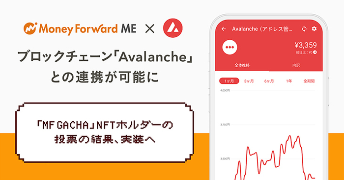 株式会社マネーフォワードは、『マネーフォワード ME』において、ブロックチェーン「Avalanche(以下「アバランチ」)」との連携が可能になったことをお知らせします。これによりユーザーは、個人のブロックチェーンウォレットで管理している「アバランチ」の資産推移を『マネーフォワード ME』上で見える化することができます。