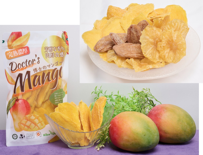 ベトナムの教授や博士号を持つ研究者が何年もかけて品種を選び抜き美味しさを研究したドライフルーツです。 ベトナム産「ドライマンゴー」「ドライパイナップル」「ドライバナナ」を会場でご試食ください。
