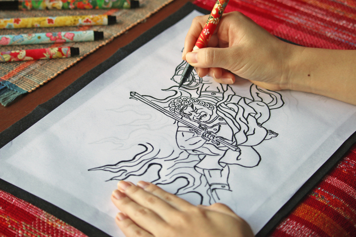 2 ねぶた絵をなぞり、心が落ち着く「ねぶた写し絵」