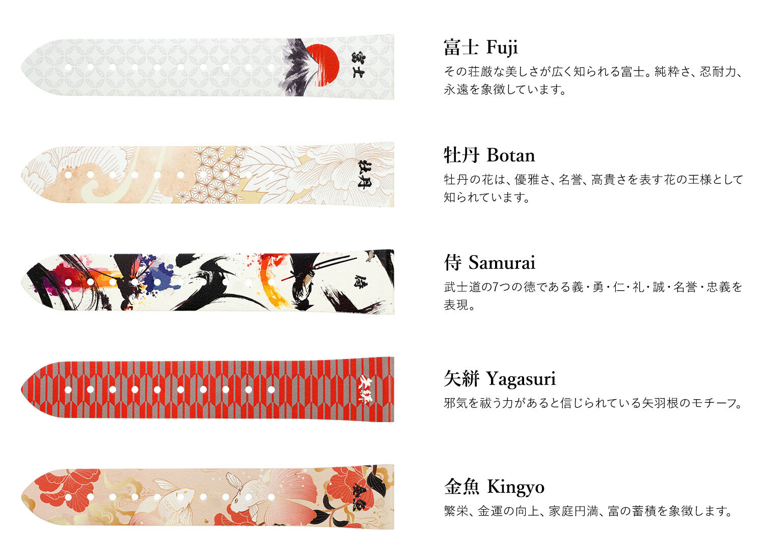 「KIMONO(キモノ)」は、日本人が長年愛用してきた着物に注目し、装飾的な美しさや健康と幸福を祈る意味を、腕時計ベルトに取り入れることで現代風に蘇らせました。腕時計やApple Watchに使用できるファッションアイテムとして、国内外での普及を目指しています。