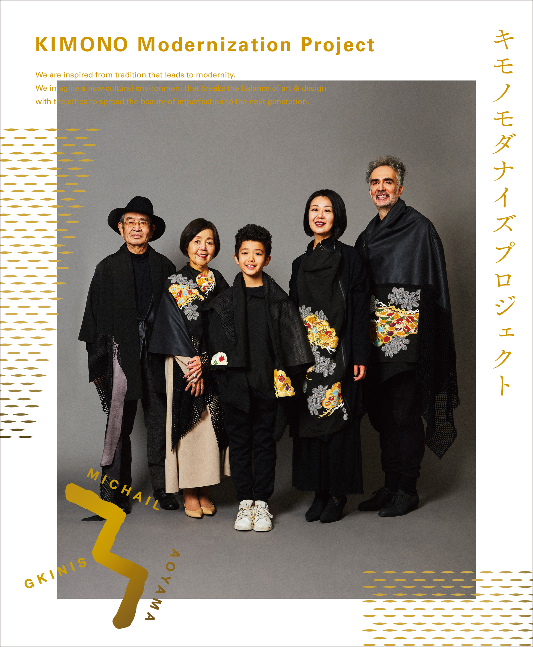 日本の生地を愛するギリシャ人デザイナー ミハイルギニスが、その日本の伝統着物を捨てずに次世代に引き継いでもらいたい想いで始める「キモノモダナイズproject」。タンスに眠る、お客様の大切な着物を新しいモード感ある現代服に生まれ変わらせます。