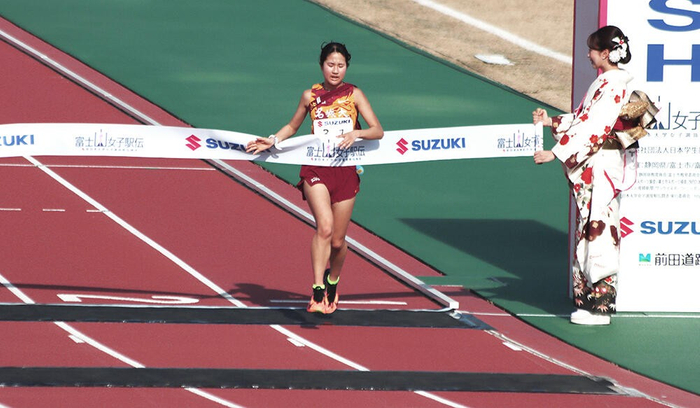 富士総合運動公園陸上競技場へ最初に到着した城西大学が初優勝のゴールテープを切り、東北福祉大学が僅差で2位に。大東文化大学の3位が入った後、競技場に現れた橋本選手が4位を死守してフィニッシュテープを切った。「1年生から7区という難しい区間を任せていただきましたが、自分の役割は果たせなかったと思います。この悔しさと、7区の上りを走れた経験をしっかり生かして、来年以降につなげていけるように頑張っていきたいと思います」と、さらなる成長を誓うレースとなった。