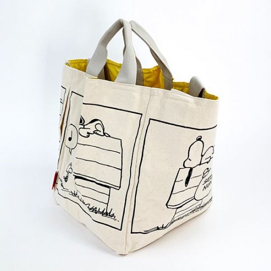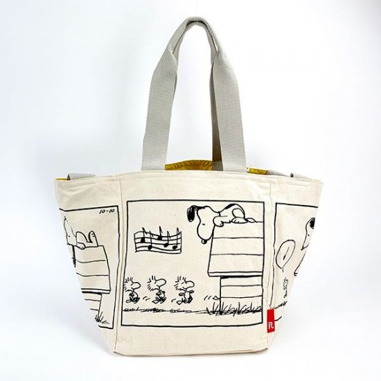 SNOOPYの4コマデザインが可愛い、大人向けMEDIUMスクエアバッグ。リバーシブルで持ち手も長短の2種類、大人っぽいカラーリングで上品さとナチュラルさをプラスしました♪