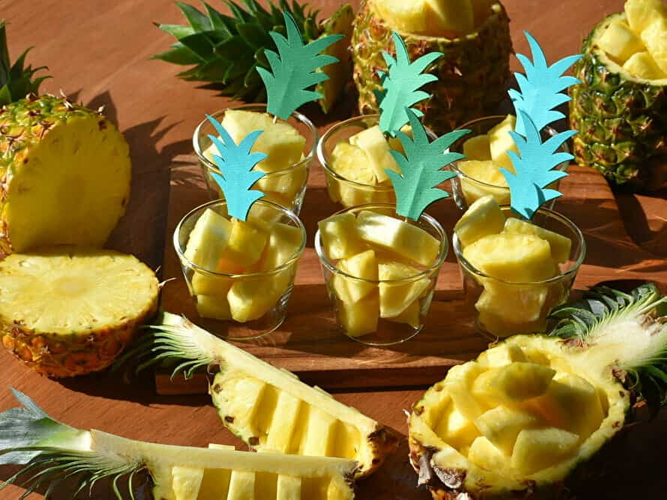 ピーチパインや、その時期に食べ頃になった旬のパインを目の前でカットし、振る舞います。収穫のギリギリまで太陽の光を浴びたパインは酸味もなく、甘みを楽しむことができます。