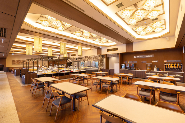 4階フロアのレストランを全面改装。木のぬくもりが感じられ、自然を感じられる食事スペースへ生まれ変わりました。夕朝食もPremiumシリーズへアップグレードし、豪華メニューやご当地グルメを豊富にご用意いたします。