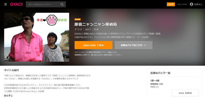 千葉テレビで2017年12月~2018年2月まで放送された今までにない業界初テロップで進行して行く中毒ドラマ「原宿ニャンニャン探偵局」は9割が昭和時代を彷彿させるギャグで展開するが、ラストはそのギャグからは想像出来ない感動の結末。それもそのはず、SIZUKUの実話をもとに描かれた物語なのです。だからこそ多くの人の涙を誘いました。その「原宿ニャンニャン探偵局」が約3年の歳月を経て、VideoMarket、DMM動画、GYAO!ストア、music.jp等で 遂に配信が開始されました。