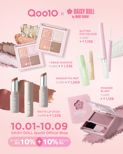 2025年10月9日(木)23:59まで、韓国発のオンラインショッピングモール「Qoo10(キューテン)」で開催中のメガポセールでデイジードールの気になるアイテムをゲット!“クーポン10%OFF+ポイント10%還元”で、実質20%OFFに。メガポマークが目印✨このお得なチャンスをお見逃しなく!