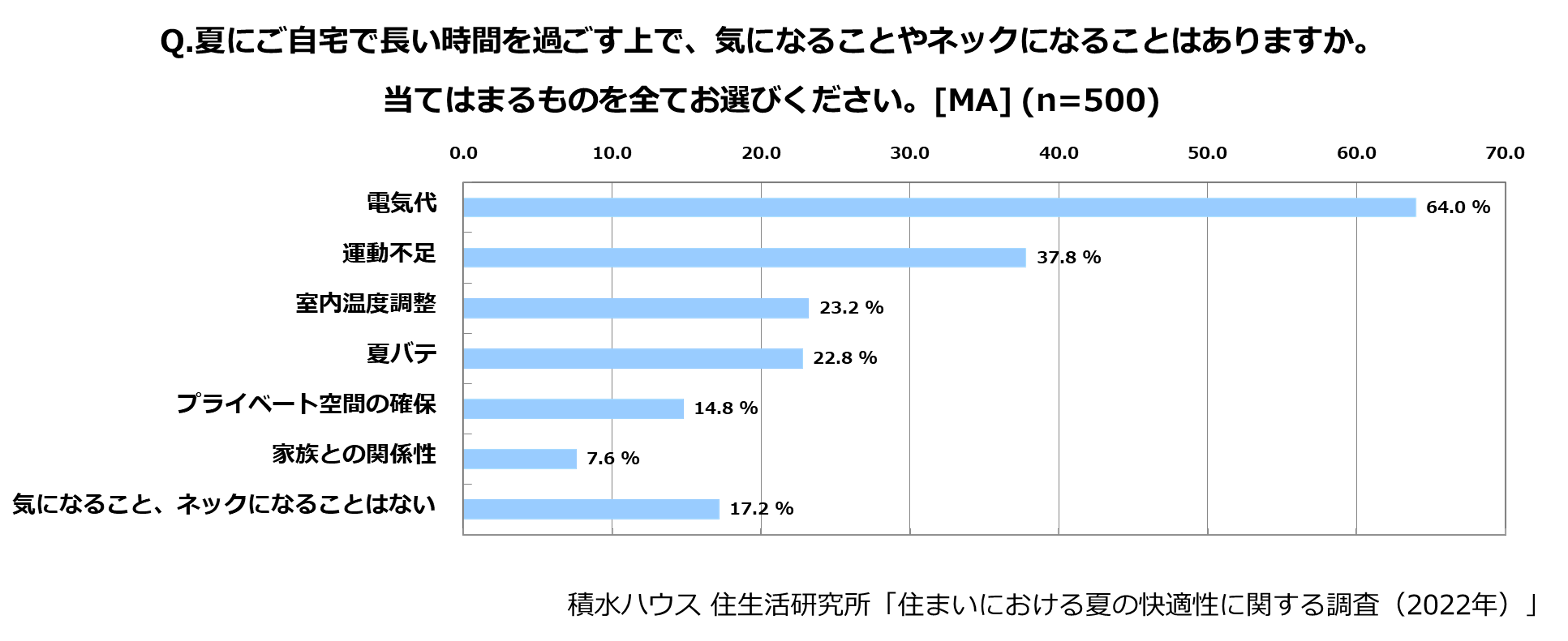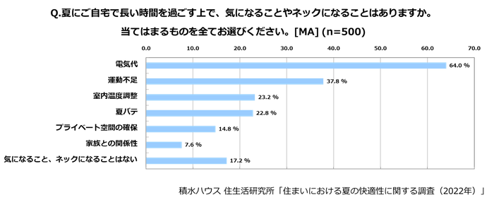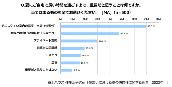 積水ハウス株式会社は、夏場の快適な生活空間のご提案を目的として、全国の20~60代の男女計500名を対象に「住まいにおける夏の快適性に関する調査」を実施しました。