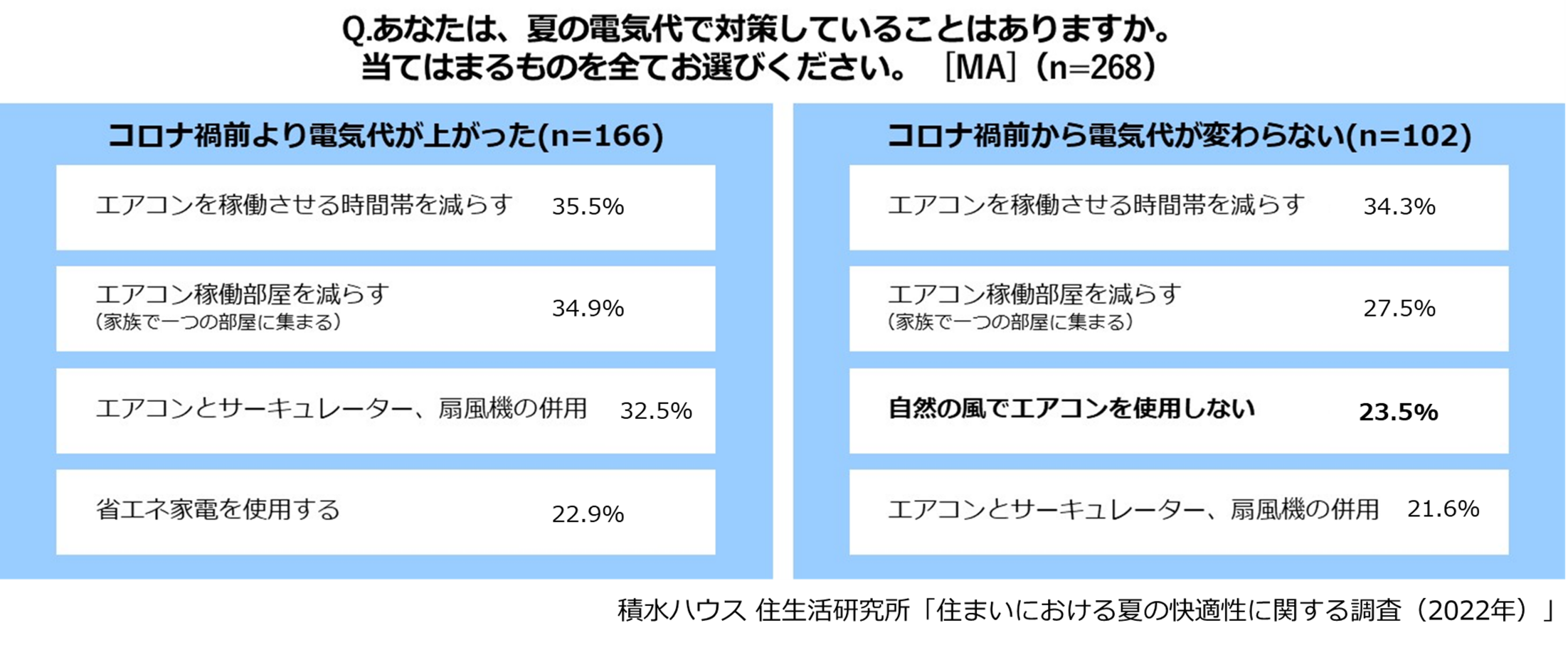 ・引用元が「積水ハウス 住生活研究所」による調査である旨と、引用元調査「住まいにおける夏場の快適性に関する調査」(2022)の記載をお願いします。