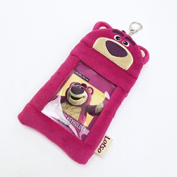 こちらは、 ロッツォ ボアフォトキーホルダーです。ボア生地がふわふわと心地の良い肌触りです。お気に入りのカードや写真を、ディズニーのキャラクターたちで可愛くデコレーションができさらにテンション上がりそうです。