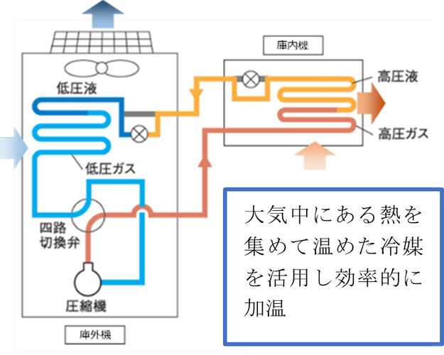 ・外気温が低い寒冷地では、庫内が冷え過ぎることで、保管物の品質を損なってしまう場合があります。従来は電気ヒーターを用いて庫内の冷え過ぎを抑制してきましたが、庫内を適正温度に調整することに時間がかかることや、消費電力が大きくなるといった課題がありました。ダイキンは、このたび冷蔵タイプに、四路切換弁を搭載し、冷媒の流れを逆転させることで庫内を暖める加温タイプを新たにラインアップします。ヒートポンプの技術を利用して効率よく冷却・加温を行うことで、常に庫内を適正な温度に保つことができます。