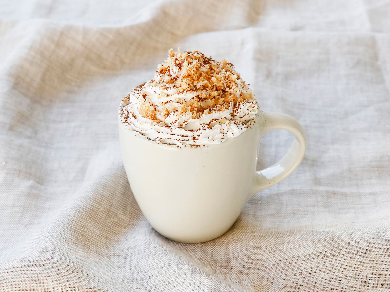 フラッペやホットドリンクなどの上部のホイップクリームなどに、パラパラとのせれば、見た目も華やかに。クリーミーな食感にアクセントが生まれます。