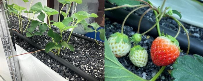 近畿大学、石垣プロトタイプ研究会、アースコンシャス株式会社は、令和5年(2023年)4月から、石垣市登野城に実験用植物工場を設置し、ポリエステル媒地を用いたイチゴの栽培実験を行っています。一般的に、イチゴは暖地での栽培は難しいと言われていますが、石垣プロトタイプ研究会が、「植物工場におけるポリエステル媒地を使った栽培組合」を立ち上げ、地域における新たな産業・雇用の創出に貢献する取り組みとして、石垣島内でのイチゴの本格生産に向けて活動しています。