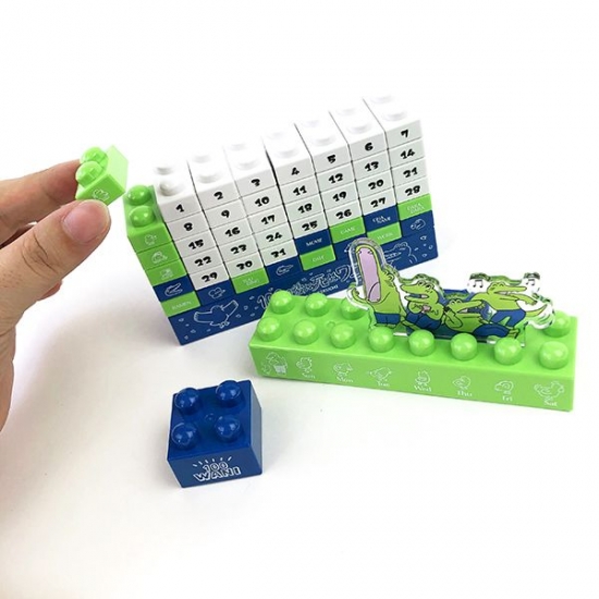 月ごとにプロックを入れ替えれば、ずっと使える万年カレンダーです。