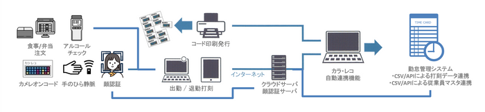 打刻機能に加え、タイムレコーダーを通じた食事・弁当の注文にも対応。