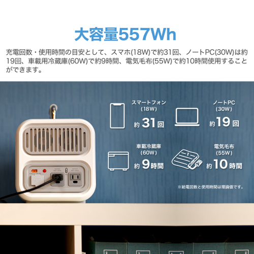 【バッテリー容量】557Wh(リン酸鉄リチウムイオン充電池)