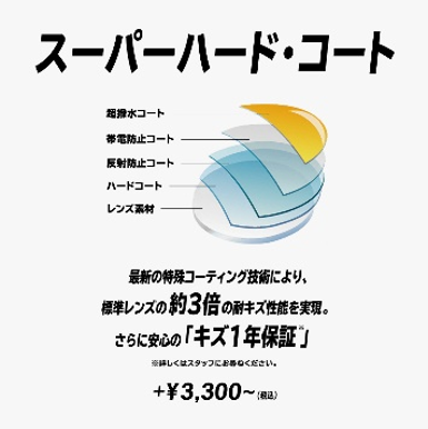 通常よりも3倍キズに強く、汚れが付きにくい特殊コーティング 「スーパーハード・コート」。