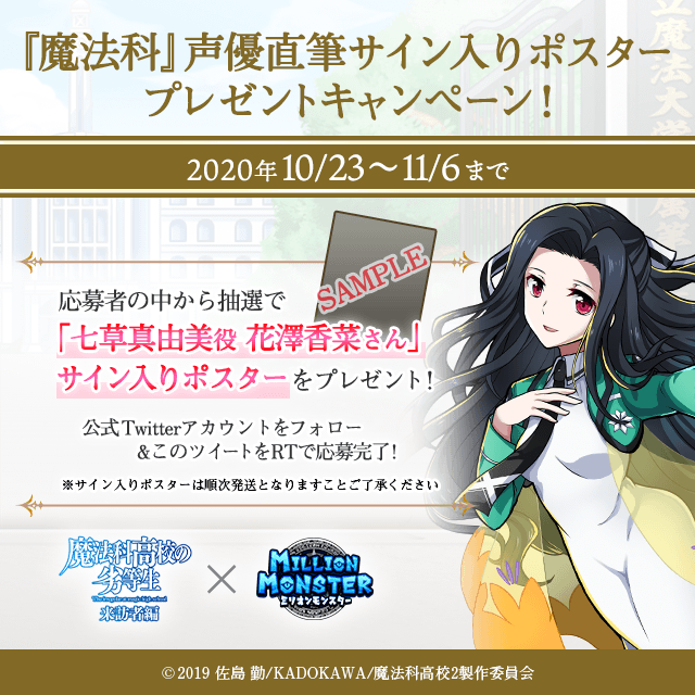 スマホRPG『ミリオンモンスター』と TVアニメ『魔法科高校の劣等生 来訪者編』の コラボイベントが10月23日スタート!