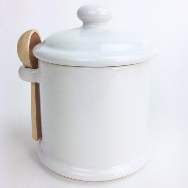 まずは、活躍度ナンバー1のキャニスターです。陶器製でお手入れも楽ちんなのがポイント♪蓋もついているので衛生的です。サイズはΦ88×135mm。お砂糖やお塩などの調味料入れにもピッタリなサイズ感ですね。