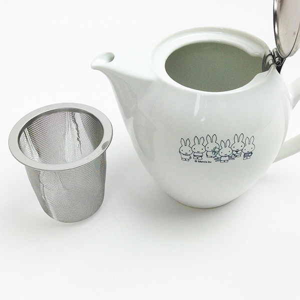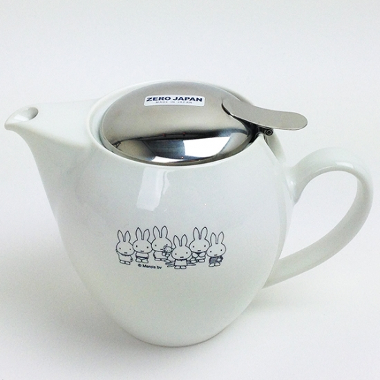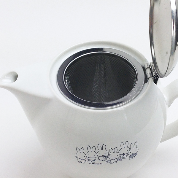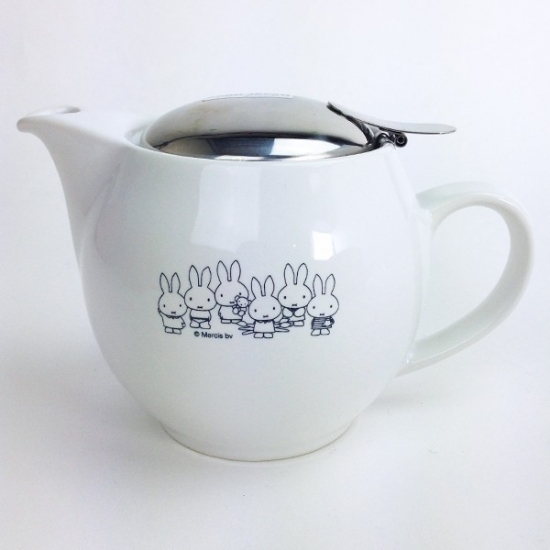 こんなにかわいいティーポットもあります。丸みのあるきれいなラインが魅力♪ミッフィ大集合のデザインにも癒されます。フタは本体と一体型になっているので、邪魔にもならず便利ですよ。