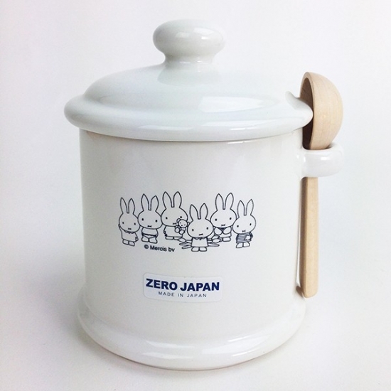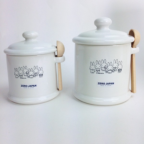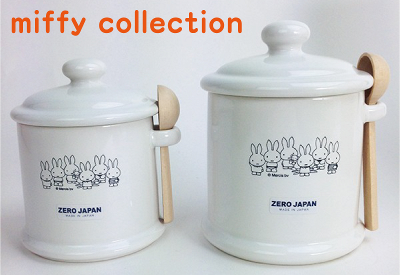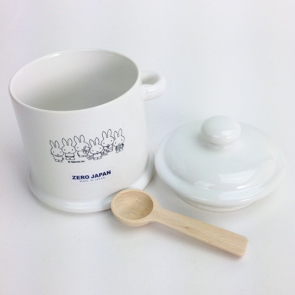 真っ白で洗練されたデザインのキャニスターやシュガーポット。ミッフィーを添えて…♪