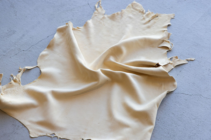もともと中国や台湾で生息する柴犬くらいの大きさのちいさいシカ「キョン」。30年ほど前に千葉県内のとある施設で逃げ出し、大繁殖している外来生物です。跳躍力とその小ささから田畑の防御が難しく、葉物や苗の食害が多発しています。その革は、人工繊維では再現できないほど繊維が細く、「革のシルク」ともいえる極上の手触りになります。