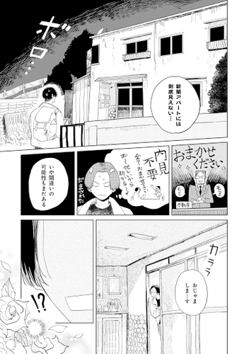聞いていた話と違うと困惑するも、七三分けで瓶底眼鏡の大家・みくるから必死に引き留められる。