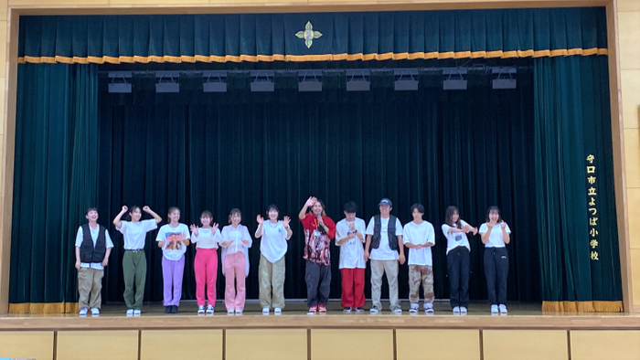 どのクラブも普段パフォーマンスを行う環境とは全く異なるため、当日までは不安もありました。しかし、小学生の笑顔を見たり小学生が学生達にたくさん話しかけてくれたこと、また、よつば小校区の育成会の方が温かく迎えてくださったことにより、とても良い雰囲気の中で楽しく活動をさせていただくことができました。