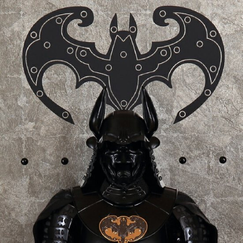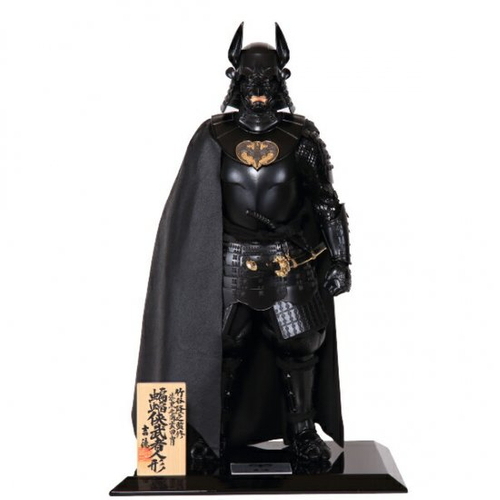 もしも戦国時代にバットマンが存在したら、、、というコンセプトのもと仕立て上げられた逸品。漆黒のマントや仮面、コウモリのような耳といったバットマンのトレードマークが、日本古来の甲冑が見事にフィットし、唯一無二の鎧飾りとなっています。