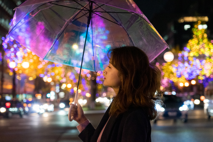 イルミネーションとの重なりが幻想的。Wpc.™の「オーロラビニール傘」が再入荷!