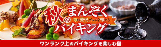兵庫県の【きのさき】では、秋の料理フェアと、バイキングにプラスアルファすることでいつもよりちょっとリッチな気分が味わえる地元ブランド「香住蟹」と「兵庫の地酒」でおもてなしいたします。いつものバイキングをワンランクアップする地元の美味しさに出会う旅にお出かけください。