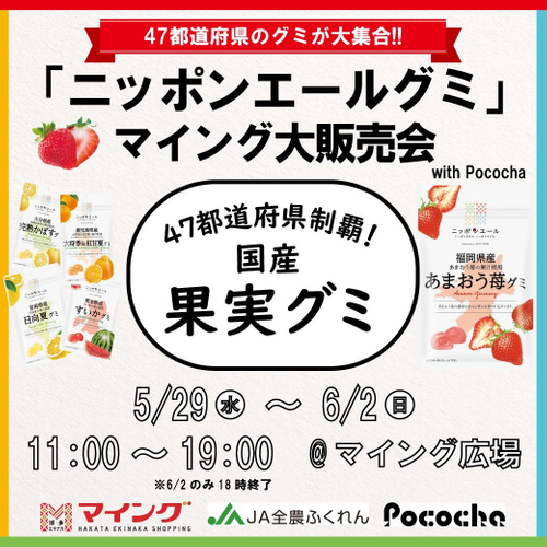 【5/29~6/2】47都道府県のグミが大集合!「ニッポンエールグミ マイング大販売会 with Pococha」 JA全農ふくれん × 博多駅マイング × DeNAのコラボ企画!