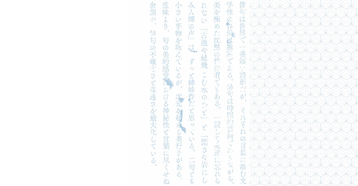 俳句は、世界でもまれにみる短い詩型の文学ですが、