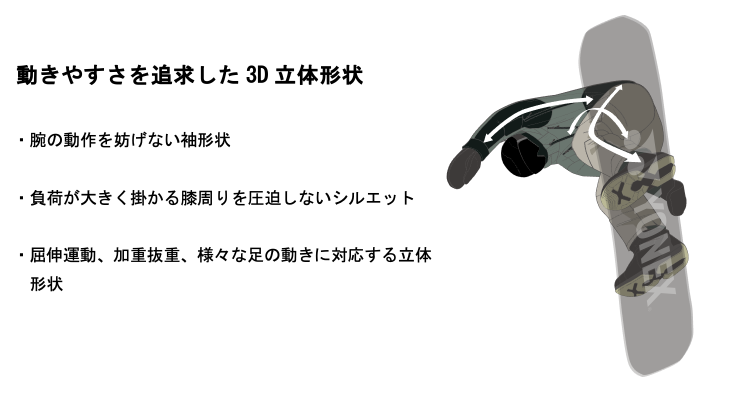 スノーボードにおいては、冨田せな選手、戸塚優斗選手、平野流佳選手など、世界的な活躍する選手を用具、ウェアの面でサポートしております。ウェアに関しては各選手から「着こまなくても暖かいので、かさばらず動きやすい。生地につっぱりを感じず、ストレスなく技が出せる」と高評価をいただいております。
