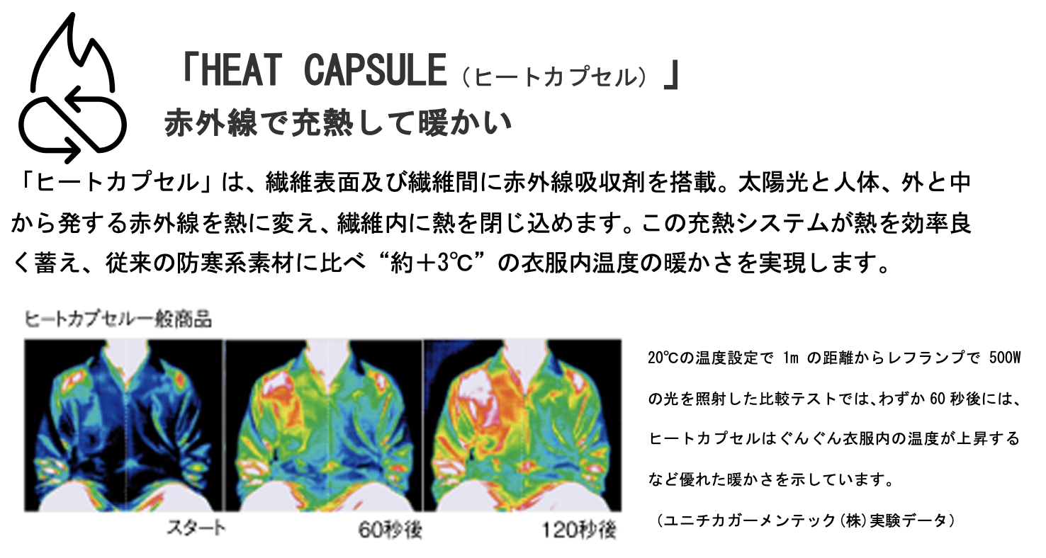 サプライするウェアには、赤外線で充熱して暖かい「ヒートカプセル」を採用。太陽光と人体から発する赤外線を熱に変え、衣服内温度を高く保ちます。また、選手の意見を取り入れ、ジャケットは腕の動きを妨げない袖形状とし、パンツは屈伸運動、加重抜重、さまざまな足の動きに対応する立体設計としました。ライディングにおける様々なストレスを解消することで選手の集中力を引き出し、ベストパフォーマンスをバックアップします。