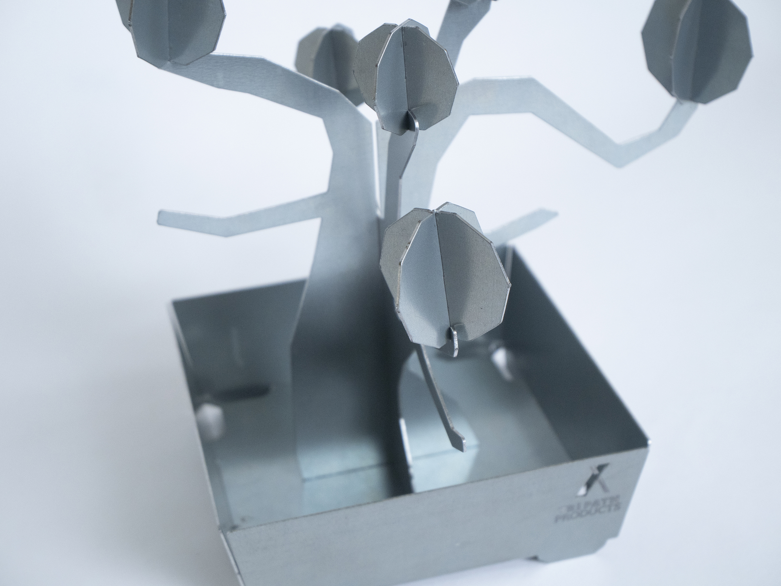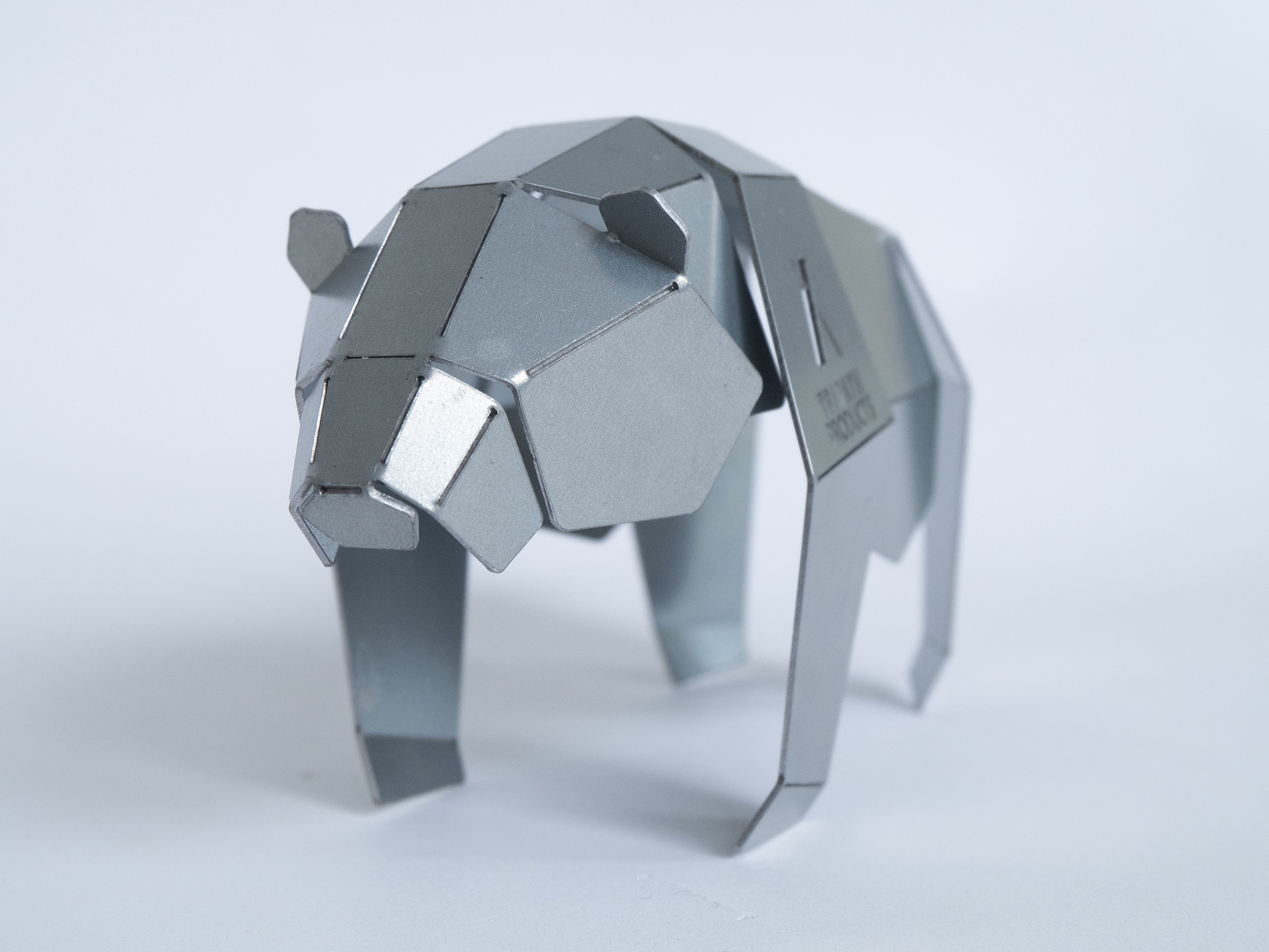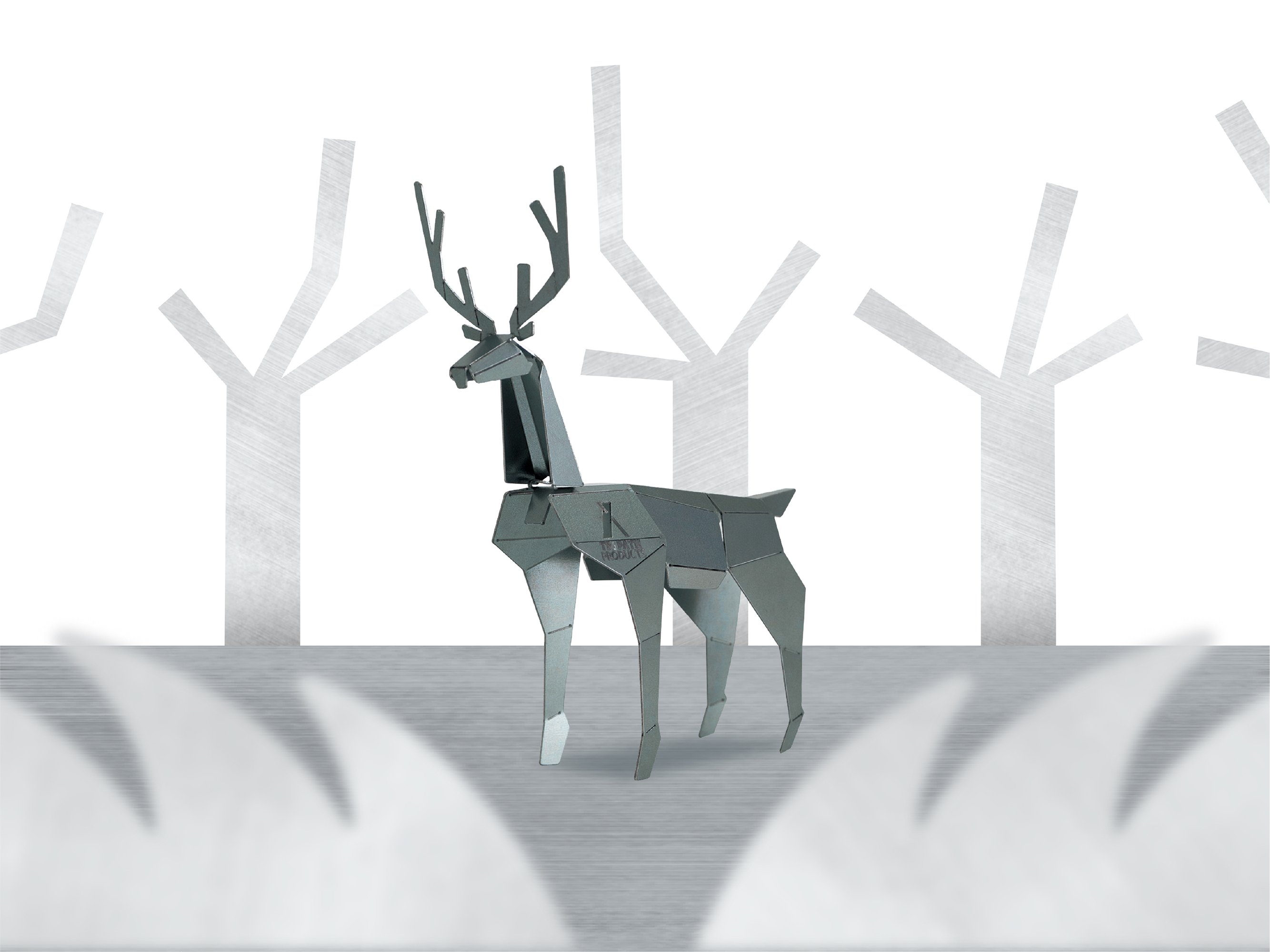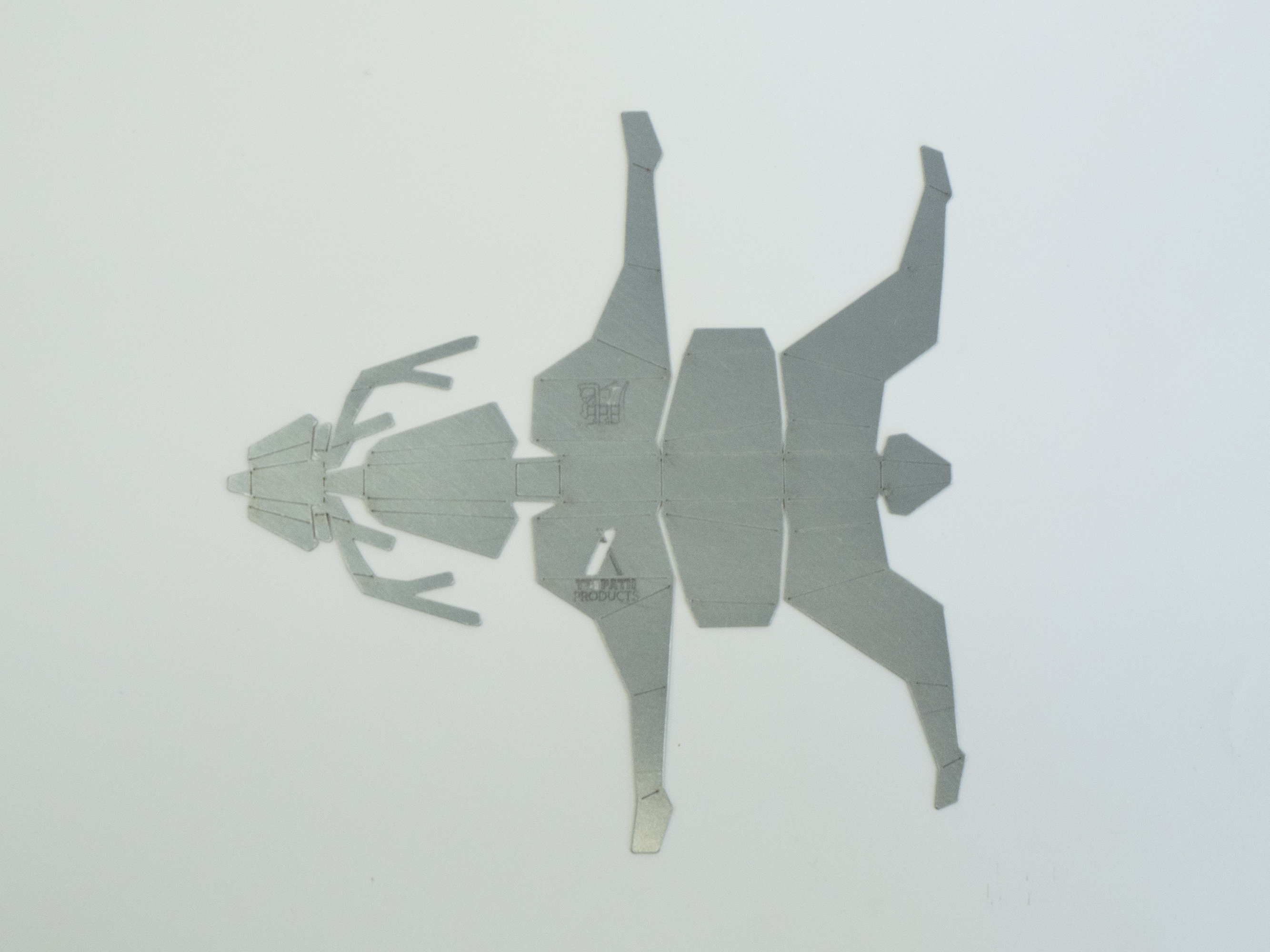 折り曲げるだけで立体的な姿が現れる、まさに鉄の折り紙です。