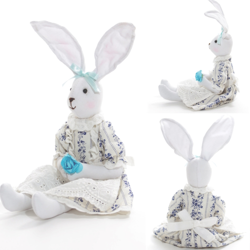 赤と青のお洋服の2パターン、約38cm(お耳部分は約10cm)、体重は約0.15kg